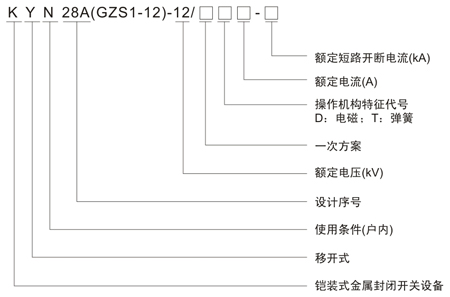 三、產品系列和主要規格 3.1本產品系列可分為電流柜(額定電流>2000A)和小電流柜(額定電流≤2000A)。 3.2開關柜主回路方案見表11。 3.3全型號的組成。